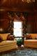 This Cowboy Cool home was designed with the owners in mind. Wood paneling, leathers, and hides create a masculine feel, while the cherubs painted on a powder room ceiling add a touch of whimsy to the space.